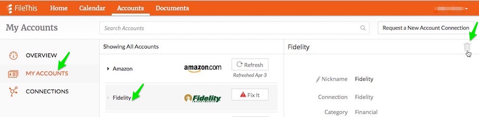 If you close an account or no longer want to have FileThis fetch its documents, you can delete the connection.