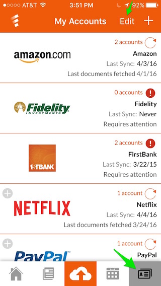 - At the top of the My Accounts screen, tap Edit.